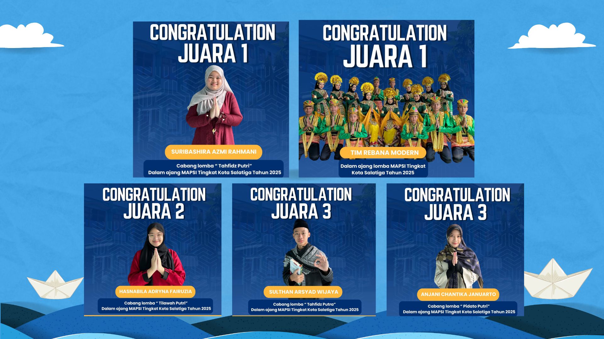 Kontingen SMP Islam Al Azhar 18 Salatiga Borong Prestasi di Ajang MAPSI Tingkat Kota Salatiga – Kontingen SMP Islam Al Azhar 18 Salatiga berhasil menorehkan prestasi gemilang dalam ajang Musabaqah Pendidikan Agama Islam (MAPSI) tingkat Kota Salatiga. Dalam ajang bergengsi ini, para siswa-siswi sukses meraih juara pada berbagai cabang lomba, membuktikan kualitas sekaligus komitmen sekolah dalam mencetak generasi unggul, berakhlak mulia, dan berprestasi. Salah satu prestasi membanggakan datang dari Tim Rebana Modern SMP Islam Al Azhar 18 Salatiga yang berhasil meraih Juara 1, berkat penampilan harmonis dan energik yang memadukan kreativitas seni islami dengan kekompakan tim. Tak kalah istimewa, Suribashira Azmi Rahmani berhasil menjadi Juara 1 Tahfidz Putri. Prestasi ini mengantarkannya maju ke tingkat Provinsi Jawa Tengah untuk mewakili Kota Salatiga, sebuah pencapaian yang menjadi kebanggaan besar bagi sekolah dan daerah. Selain itu, beberapa siswa lain juga berhasil mengharumkan nama sekolah dengan meraih prestasi pada cabang lomba lainnya, di antaranya:…